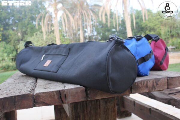 This bag fits all of our yoga mats and has a wide opening to make accessing your mat seamless. 77cm Length x 16cm Diameter Water resistant Fabric Easy to wipe clean Adjustable strap for customized fit available in 3 colors